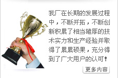 我廠堅持“以質量求生存,以品種求發(fā)展,以服務求信譽”,我們將不斷的努力為石化行業制造出更多質量更好的石化裝備產品。 |